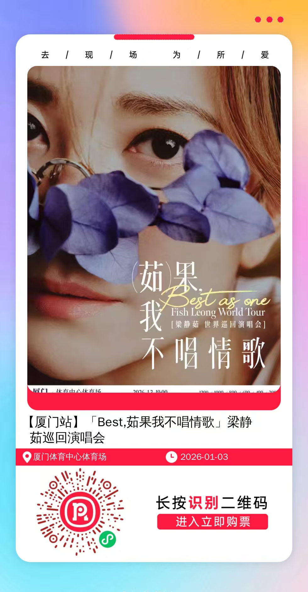 购票提醒:直接打开左侧海报(鼠标移动到海报上,右键选择“在新标签页打开图片”),用手机打开微信扫描海报中的二维码,扫描之后手机登录即可购票。如有疑问,可加微信cary7790咨询,下单后全程跟单,跟进一切关于门票的问题。