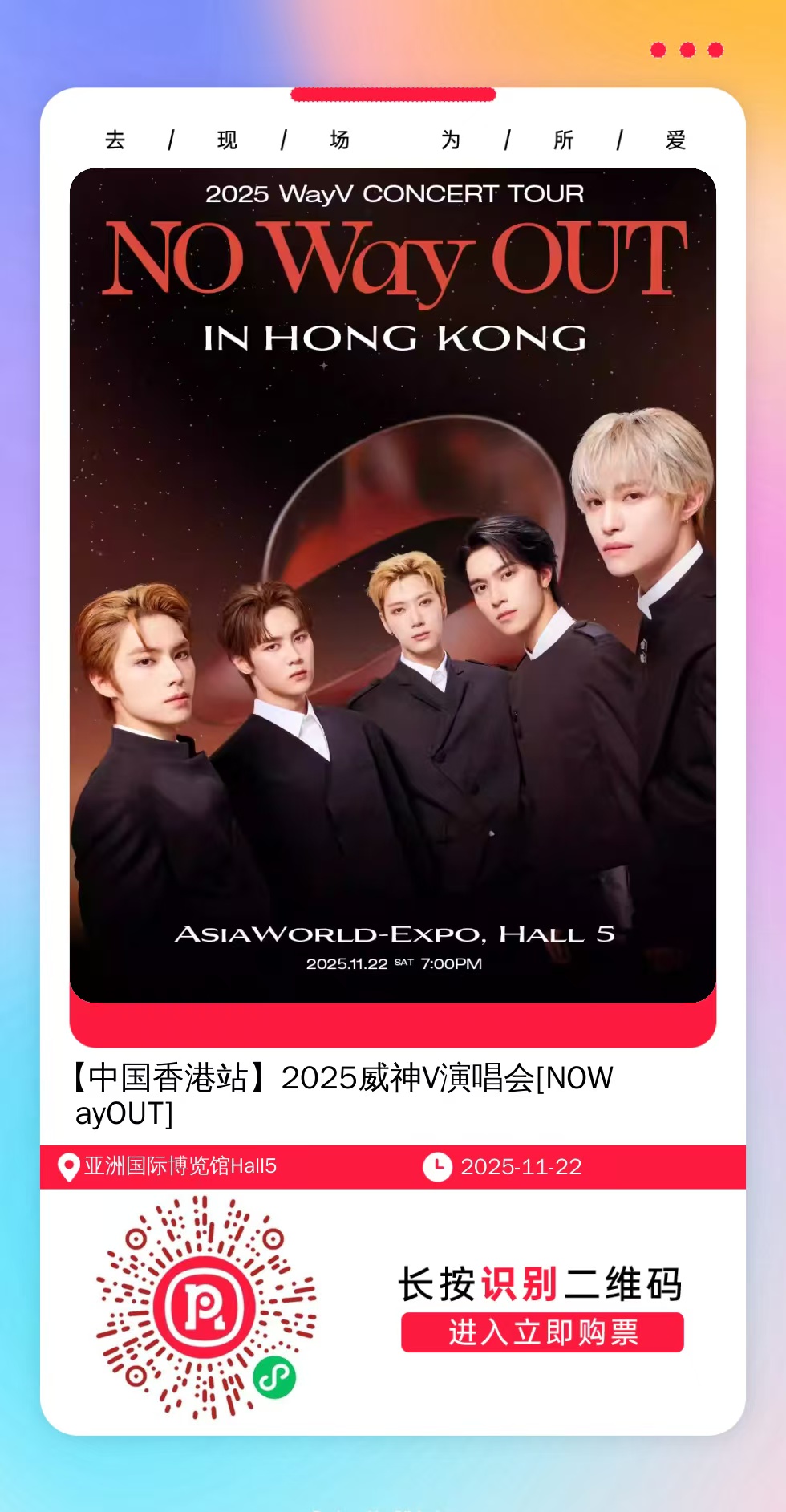 微信扫一扫打赏权益1:门票开售前单独提醒,不错过抢票时间,可咨询任何歌手近期演唱会。