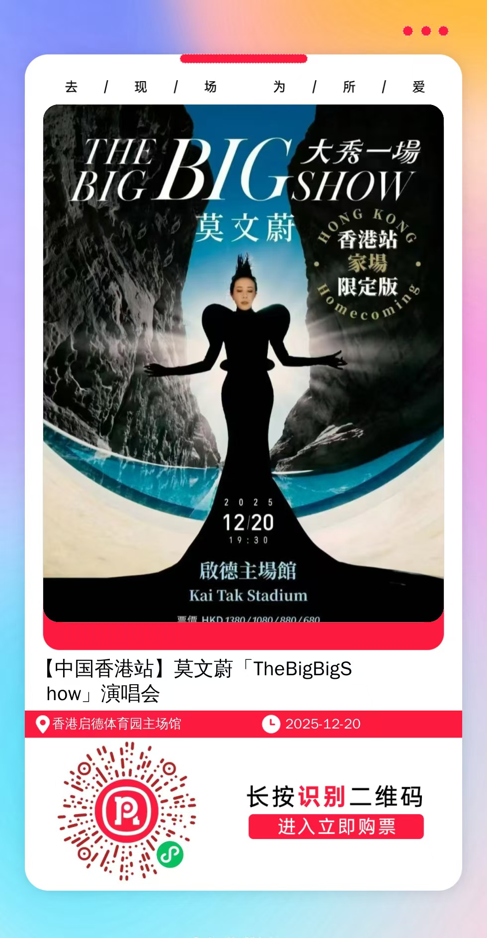 购票提醒:直接打开左侧海报(鼠标移动到海报上,右键选择“在新标签页打开图片”),用手机打开微信扫描海报中的二维码,扫描之后手机登录即可购票。如有疑问,可加微信cary7790咨询,下单后全程跟单,跟进一切关于门票的问题。