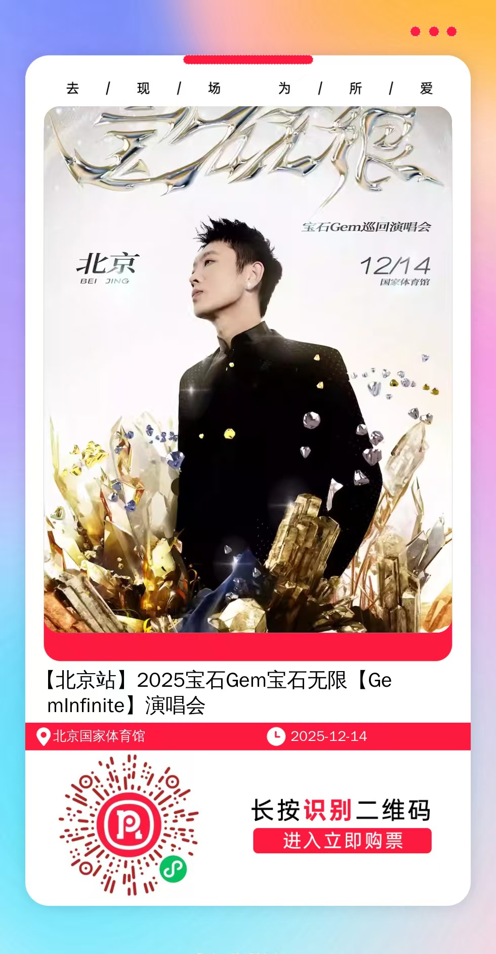 微信扫一扫打赏权益1:门票开售前单独提醒,不错过抢票时间,可咨询任何歌手近期演唱会。