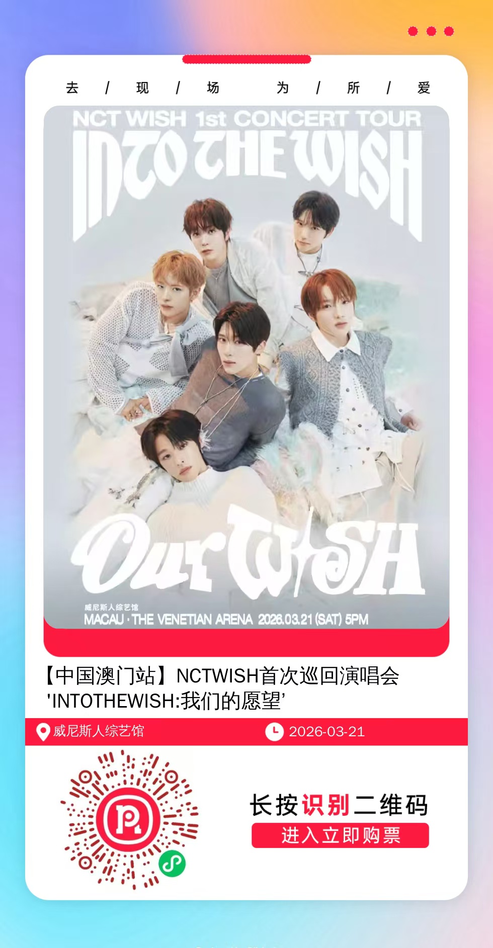 微信扫一扫打赏权益1:门票开售前单独提醒,不错过抢票时间,可咨询任何歌手近期演唱会。
