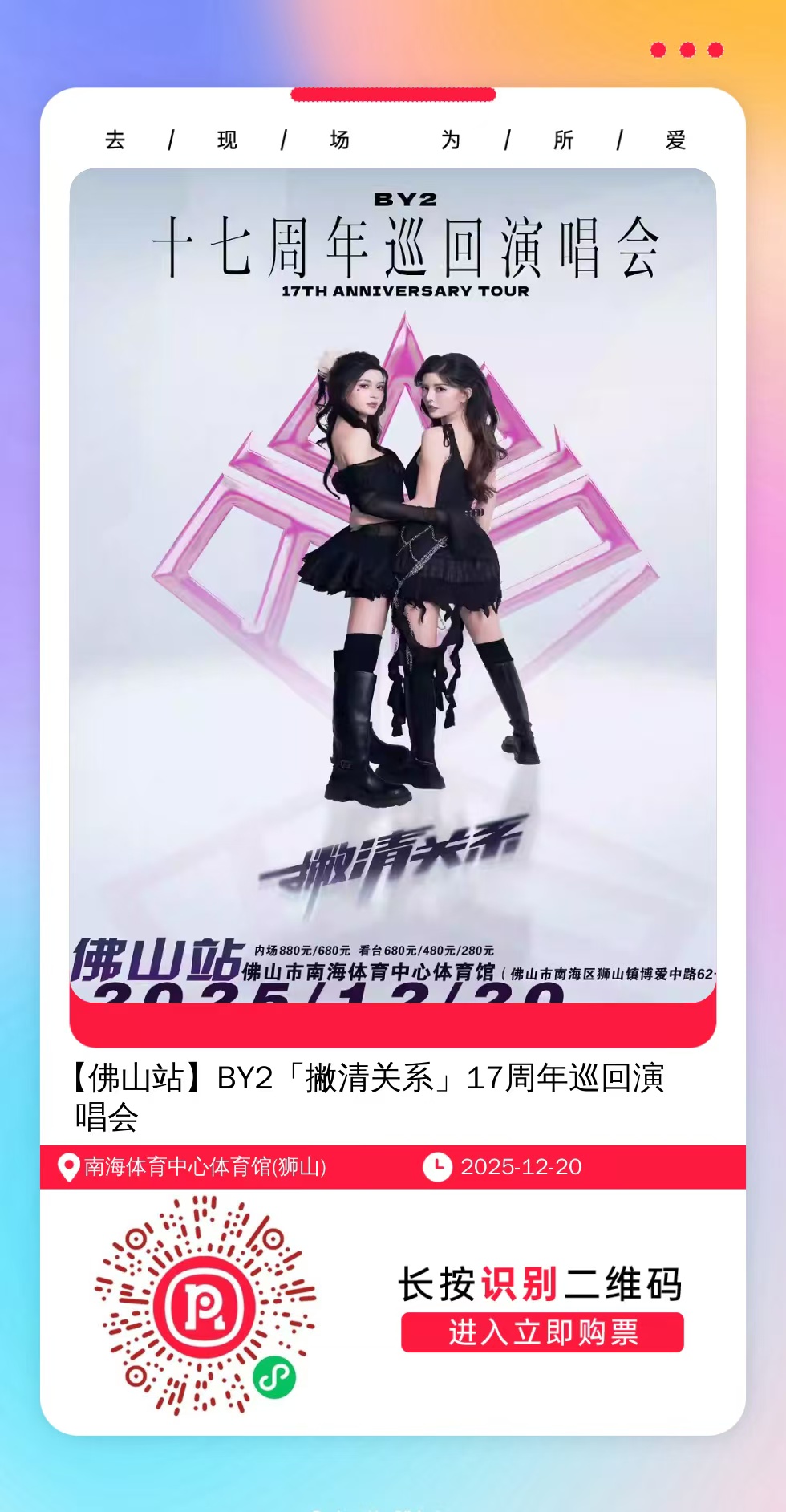 购票提醒:直接打开左侧海报(鼠标移动到海报上,右键选择“在新标签页打开图片”),用手机打开微信扫描海报中的二维码,扫描之后手机登录即可购票。如有疑问,可加微信cary7790咨询,下单后全程跟单,跟进一切关于门票的问题。