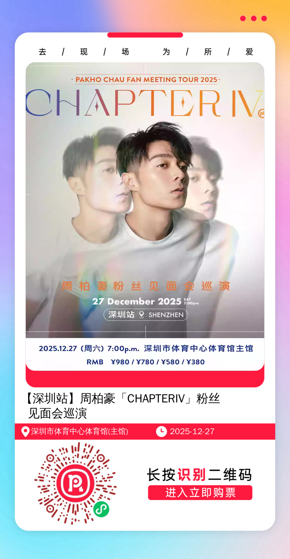 购票提醒:直接打开左侧海报(鼠标移动到海报上,右键选择“在新标签页打开图片”),用手机打开微信扫描海报中的二维码,扫描之后手机登录即可购票。如有疑问,可加微信cary7790咨询,下单后全程跟单,跟进一切关于门票的问题。
