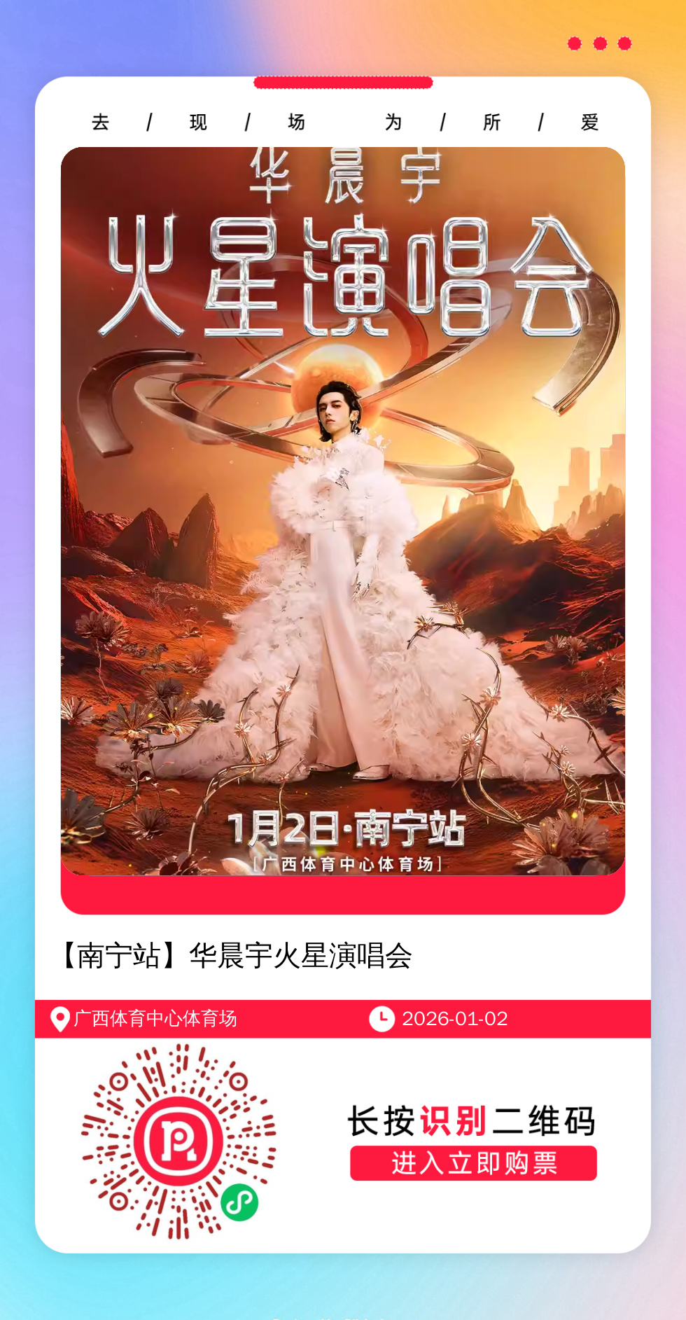 微信扫一扫打赏权益1:门票开售前单独提醒,不错过抢票时间,可咨询任何歌手近期演唱会。