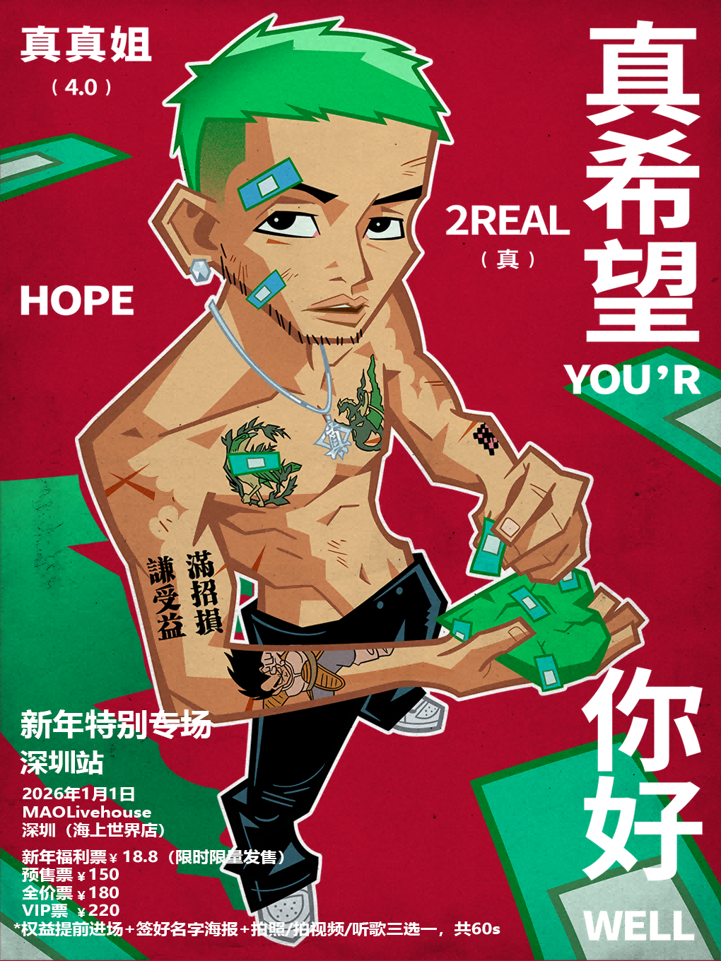 权益3:打赏50元(包含上面2个权益),还可享国内任何演唱会代抢服务1次,不收取除票价外的其他费用。