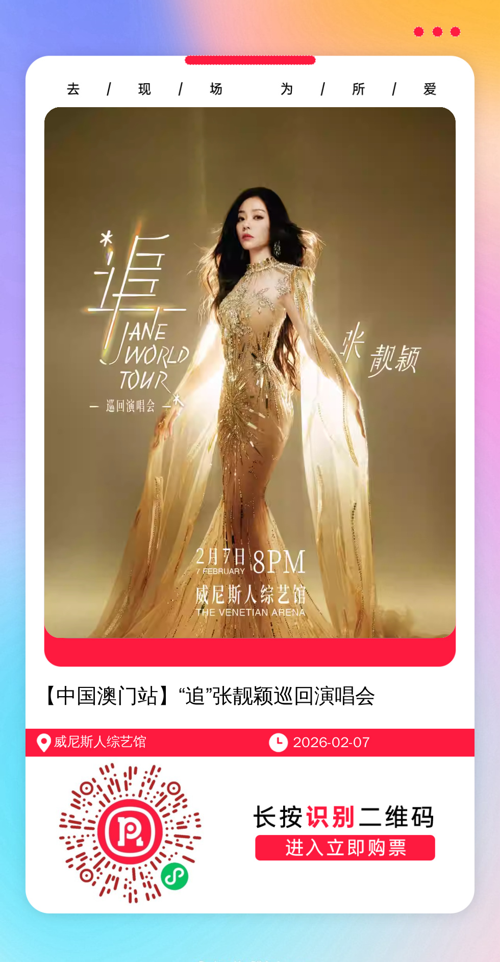 微信扫一扫打赏权益1:门票开售前单独提醒,不错过抢票时间,可咨询任何歌手近期演唱会。