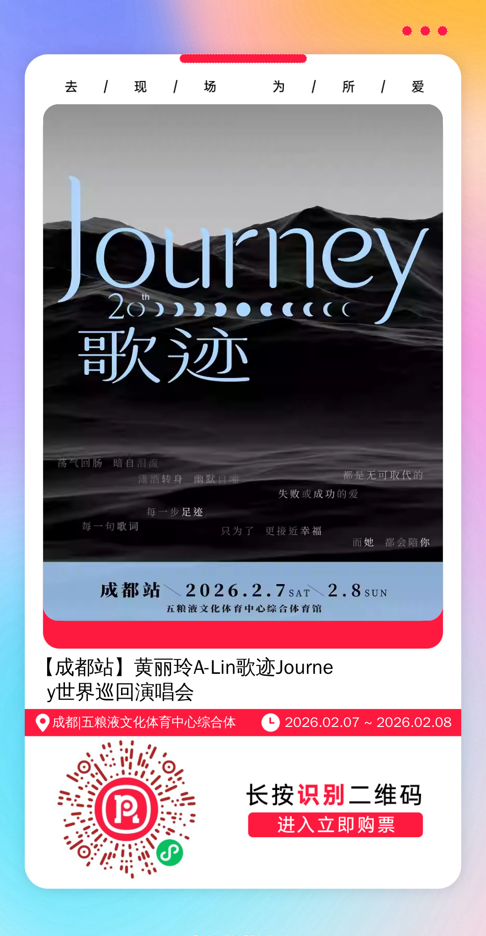 购票提醒:直接打开左侧海报(鼠标移动到海报上,右键选择“在新标签页打开图片”),用手机打开微信扫描海报中的二维码,扫描之后手机登录即可购票。如有疑问,可加微信cary7790咨询,下单后全程跟单,跟进一切关于门票的问题。