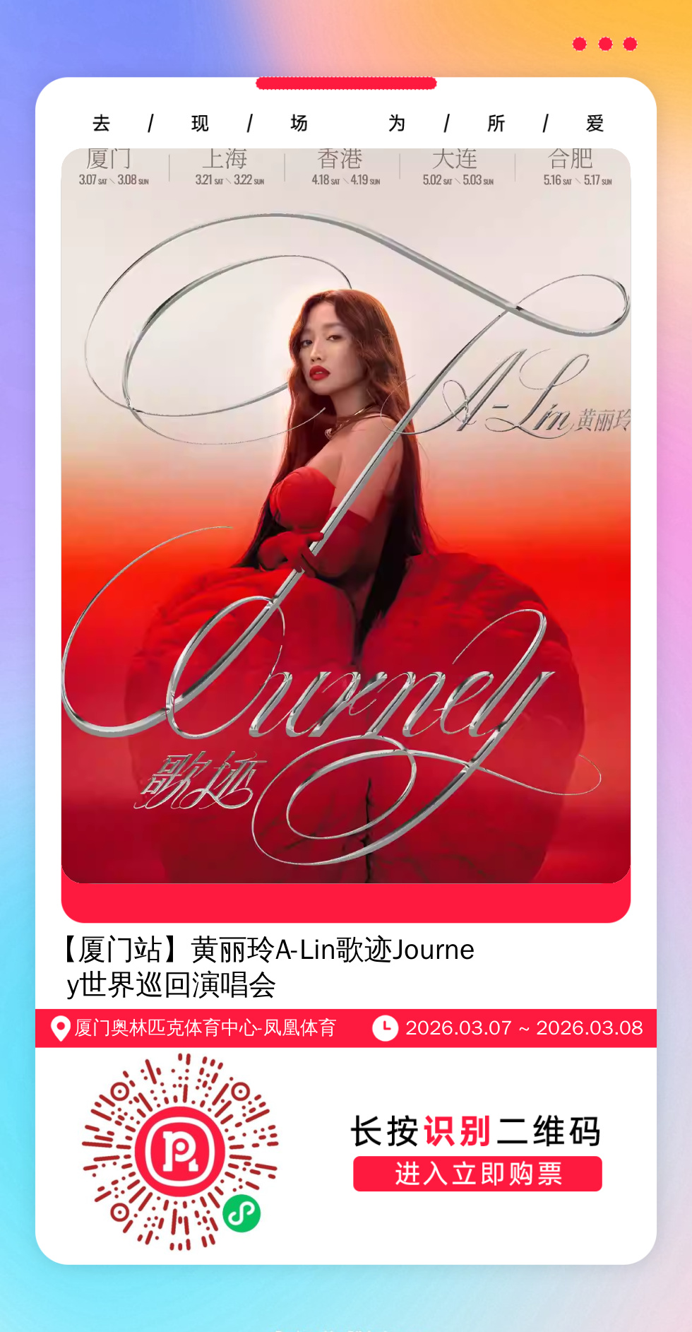 购票提醒:直接打开左侧海报(鼠标移动到海报上,右键选择“在新标签页打开图片”),用手机打开微信扫描海报中的二维码,扫描之后手机登录即可购票。如有疑问,可加微信cary7790咨询,下单后全程跟单,跟进一切关于门票的问题。