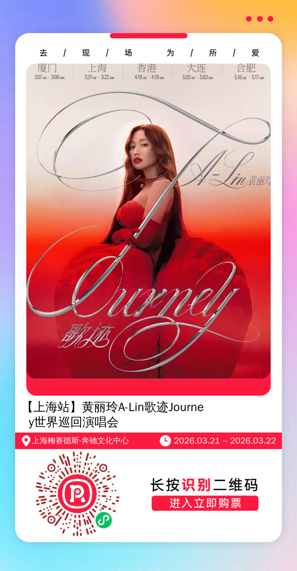 购票提醒:直接打开左侧海报(鼠标移动到海报上,右键选择“在新标签页打开图片”),用手机打开微信扫描海报中的二维码,扫描之后手机登录即可购票。如有疑问,可加微信cary7790咨询,下单后全程跟单,跟进一切关于门票的问题。