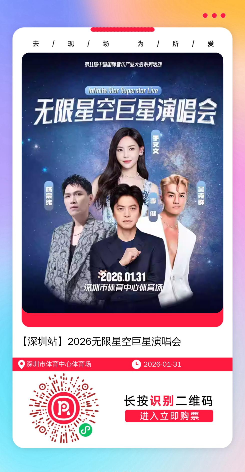 权益3:打赏50元(包含上面2个权益),还可享国内任何演唱会代抢服务1次,不收取除票价外的其他费用。
