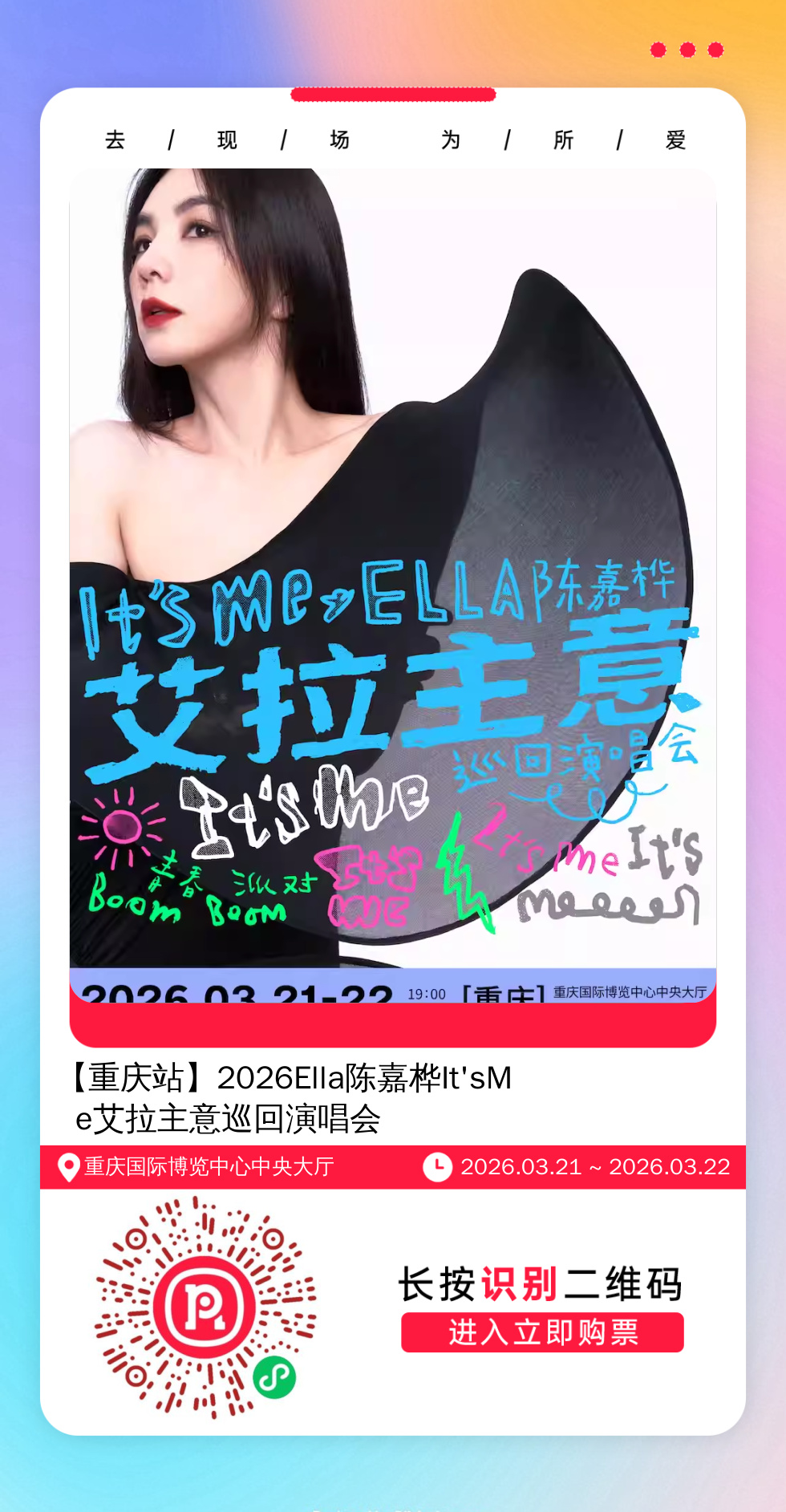 购票提醒:将左侧海报保存至手机,打开微信扫一扫,选择手机相册中保存的海报,扫描之后手机登录即可购票。如有疑问,可加微信cary7790咨询,下单后全程跟单,跟进一切关于门票的问题。
