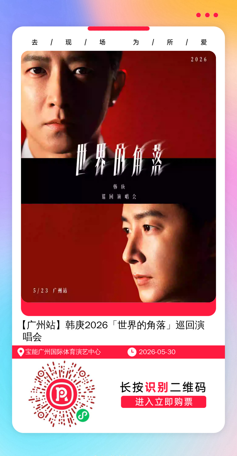 购票提醒:直接打开左侧海报(鼠标移动到海报上,右键选择“在新标签页打开图片”),用手机打开微信扫描海报中的二维码,扫描之后手机登录即可购票。如有疑问,可加微信cary7790咨询,下单后全程跟单,跟进一切关于门票的问题。