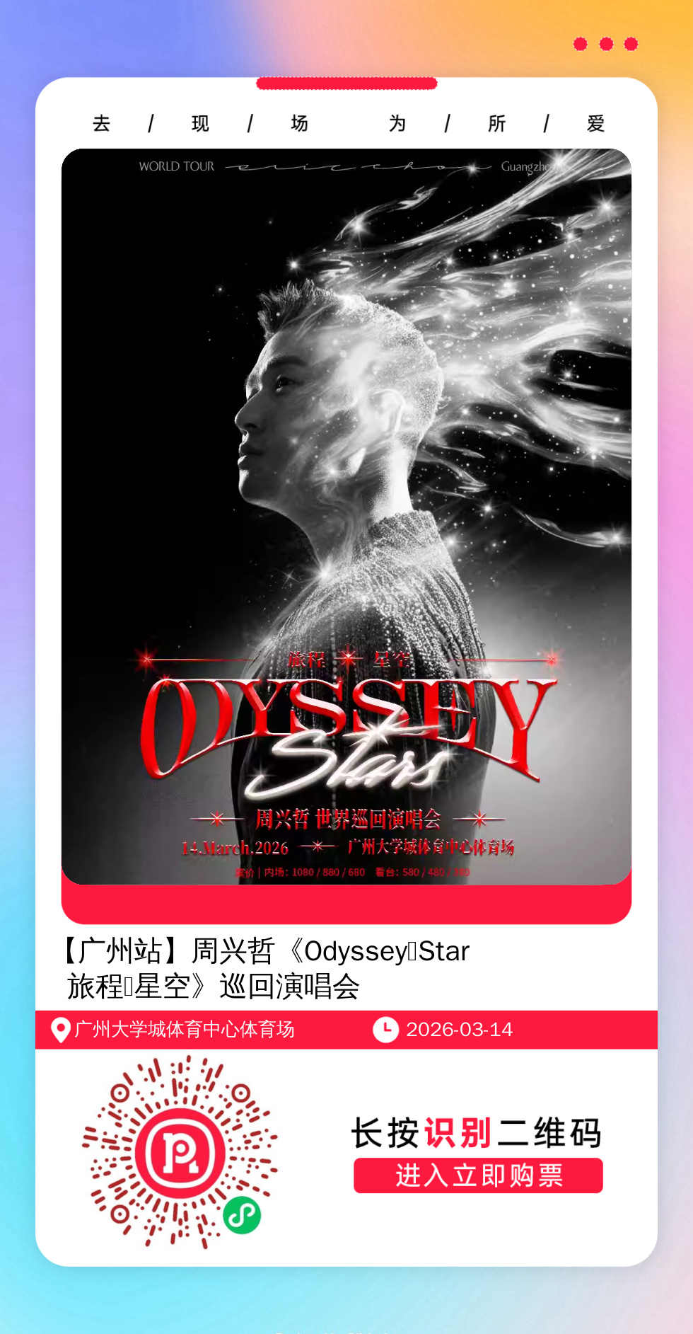 微信扫一扫打赏权益1:门票开售前单独提醒,不错过抢票时间,可咨询任何歌手近期演唱会。