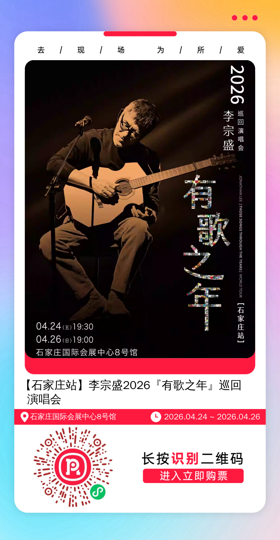 购票提醒:直接打开左侧海报(鼠标移动到海报上,右键选择“在新标签页打开图片”),用手机打开微信扫描海报中的二维码,扫描之后手机登录即可购票。如有疑问,可加微信cary7790咨询,下单后全程跟单,跟进一切关于门票的问题。