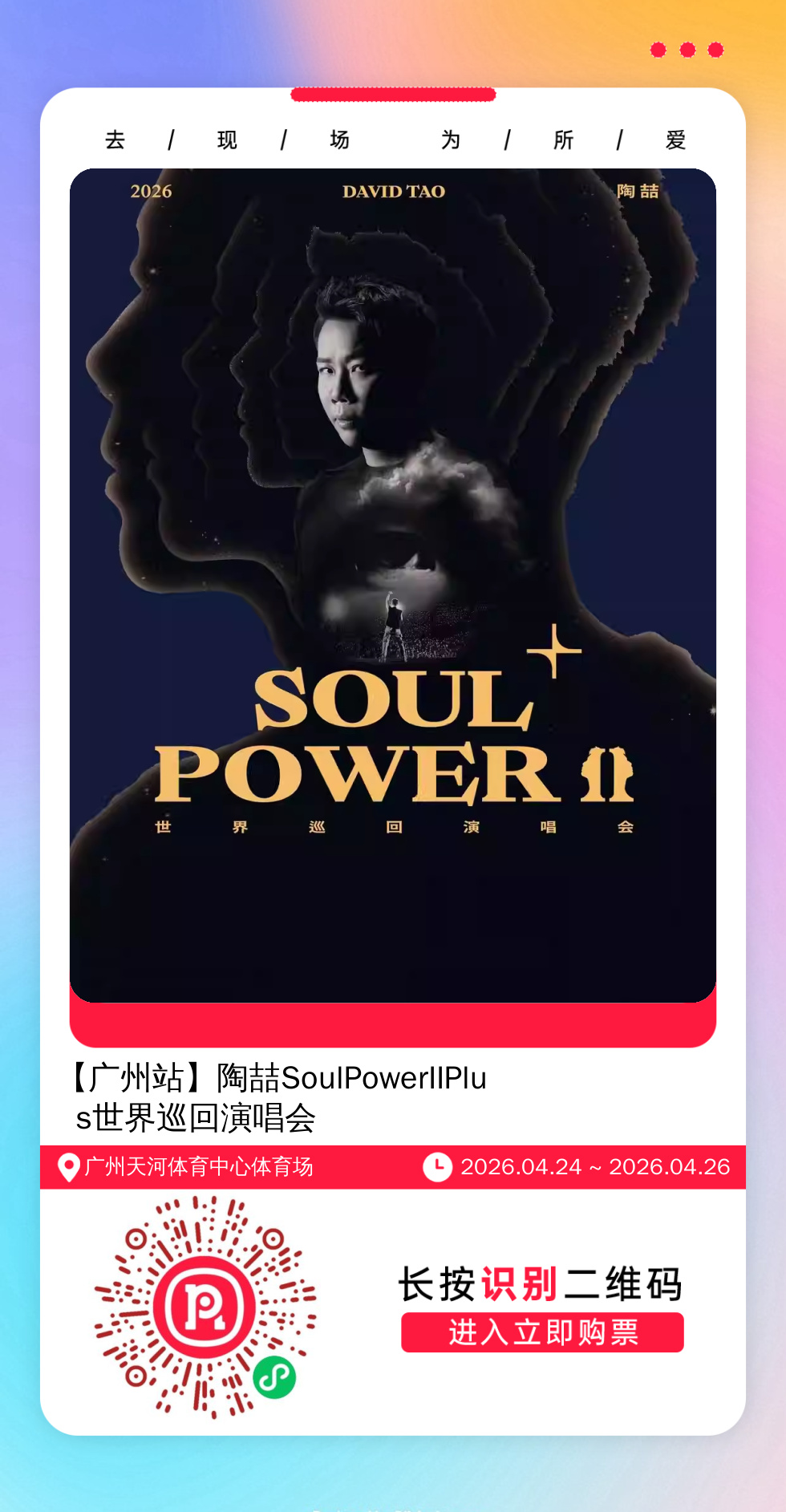 权益3:打赏50元(包含上面2个权益),还可享国内任何演唱会代抢服务1次,不收取除票价外的其他费用。