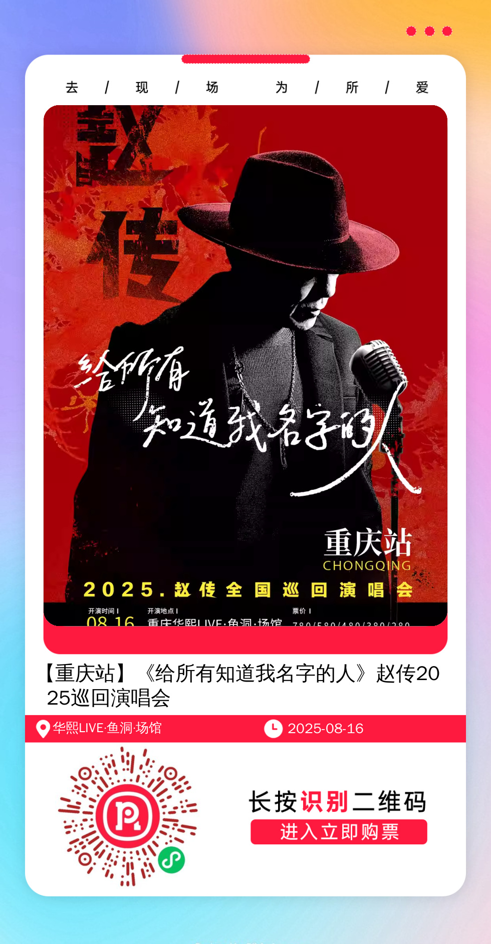 购票提醒:直接打开左侧海报(鼠标移动到海报上,右键选择“在新标签页打开图片”),用手机打开微信扫描海报中的二维码,扫描之后手机登录即可购票。如有疑问,可加微信cary7790咨询,下单后全程跟单,跟进一切关于门票的问题。