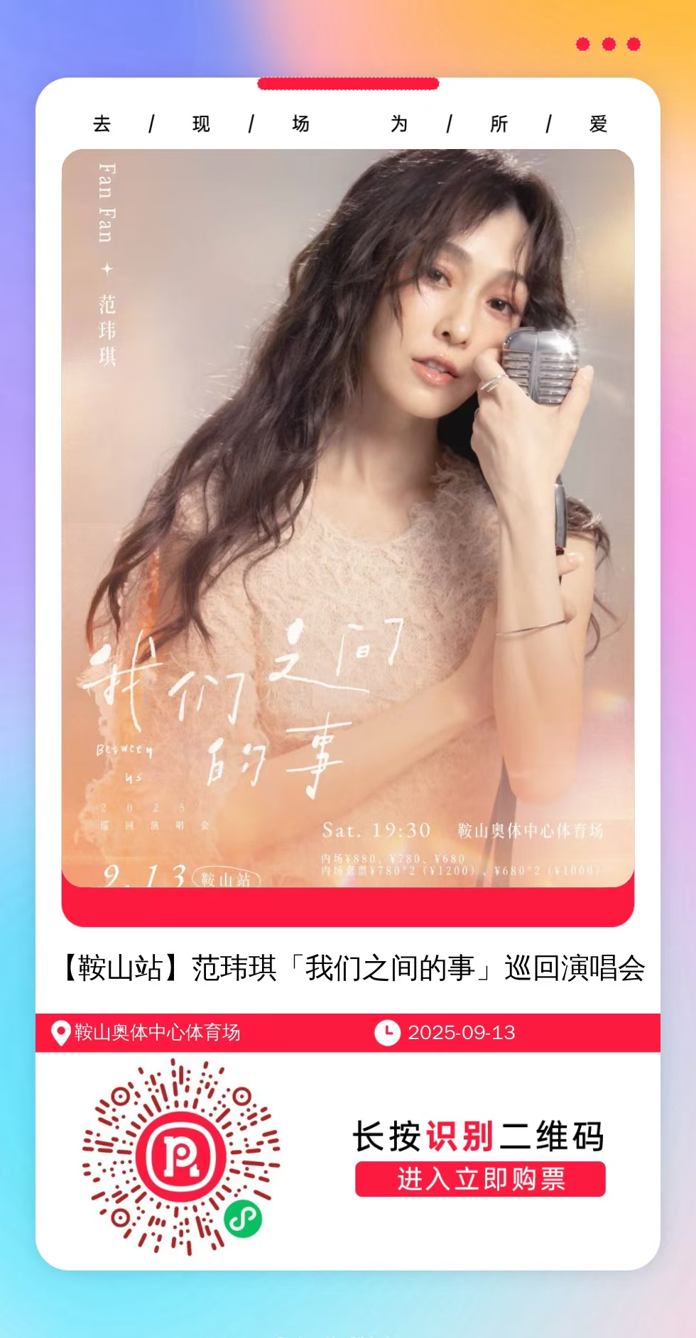 微信扫一扫打赏权益1:门票开售前单独提醒,不错过抢票时间,可咨询任何歌手近期演唱会。