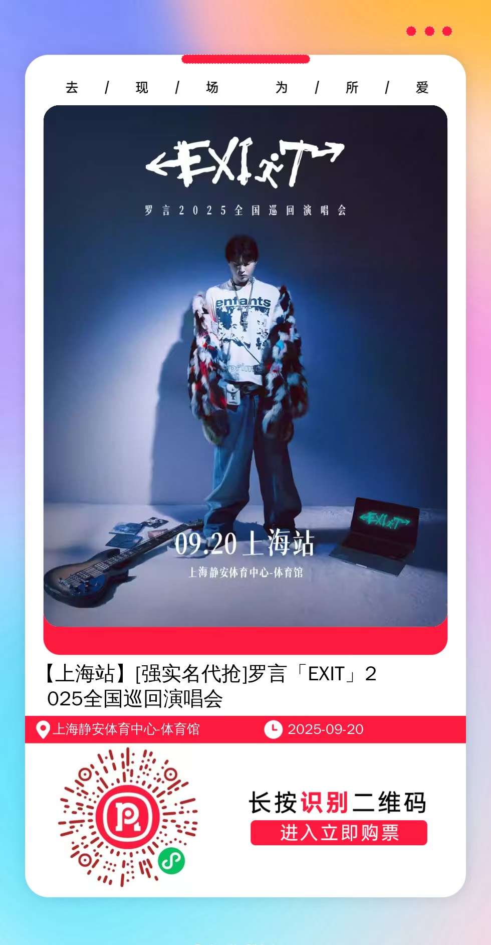 购票提醒:直接打开左侧海报(鼠标移动到海报上,右键选择“在新标签页打开图片”),用手机打开微信扫描海报中的二维码,扫描之后手机登录即可购票。如有疑问,可加微信cary7790咨询,下单后全程跟单,跟进一切关于门票的问题。