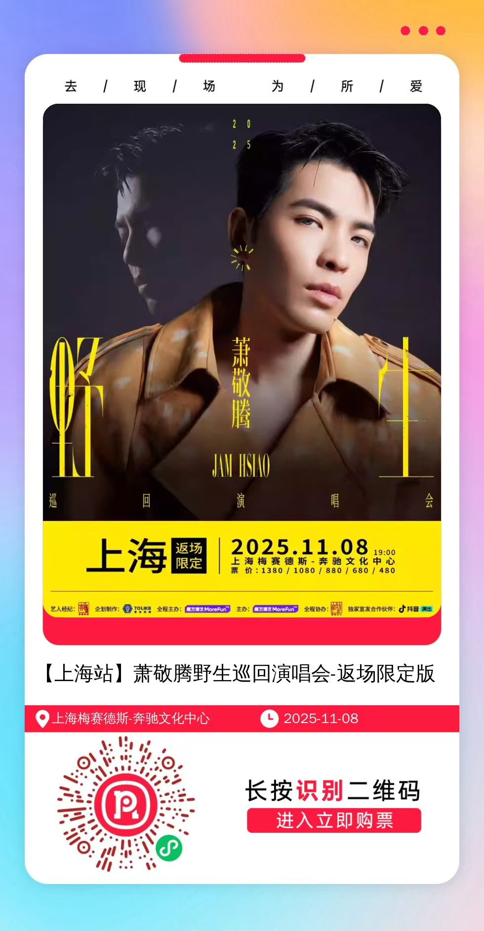 购票提醒:直接打开左侧海报(鼠标移动到海报上,右键选择“在新标签页打开图片”),用手机打开微信扫描海报中的二维码,扫描之后手机登录即可购票。如有疑问,可加微信cary7790咨询,下单后全程跟单,跟进一切关于门票的问题。